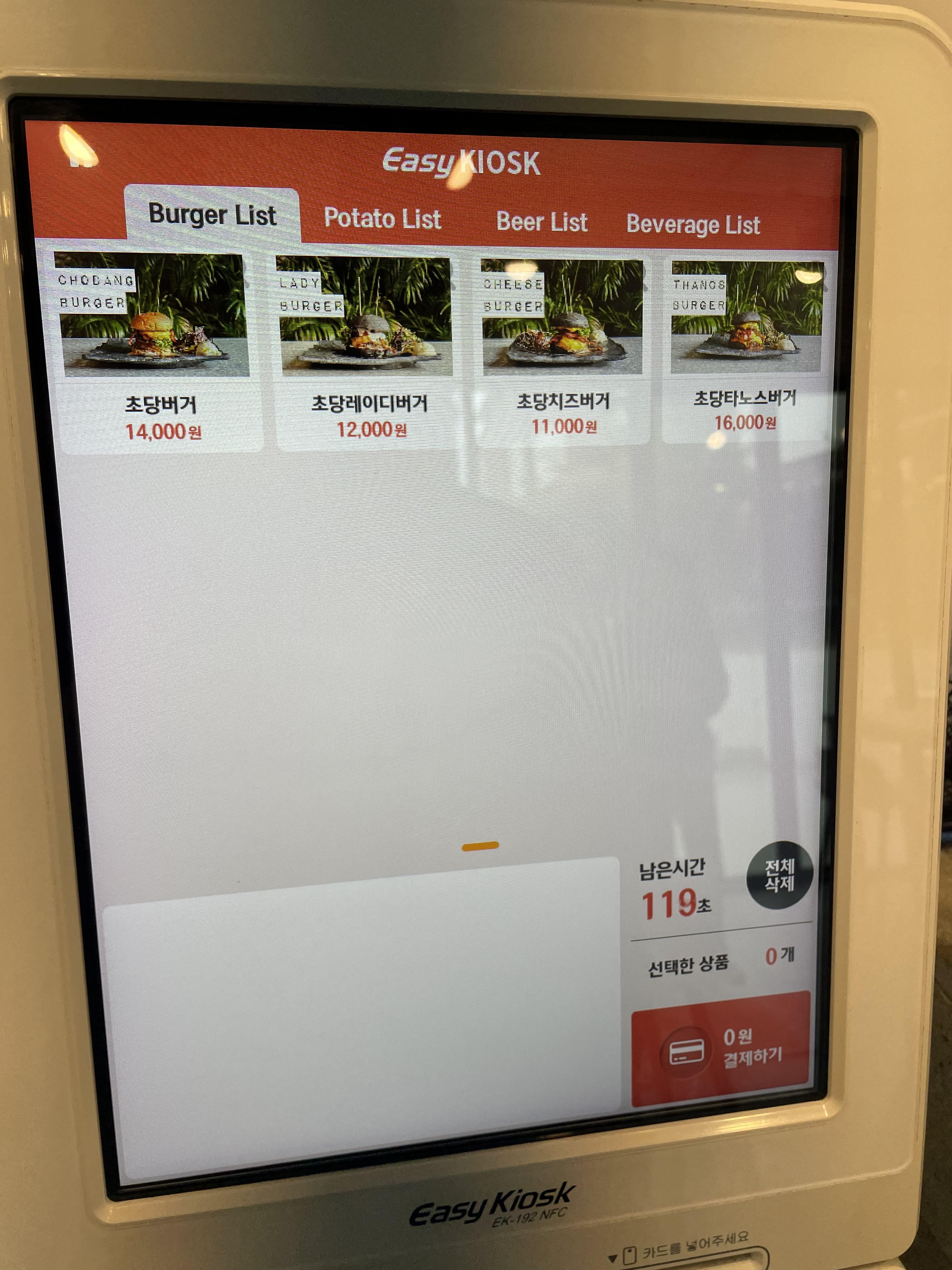 타노스 버거.. 궁금했지만 너무 헤비 할 것 같아 초당버거와 초당치즈버거로 주문!