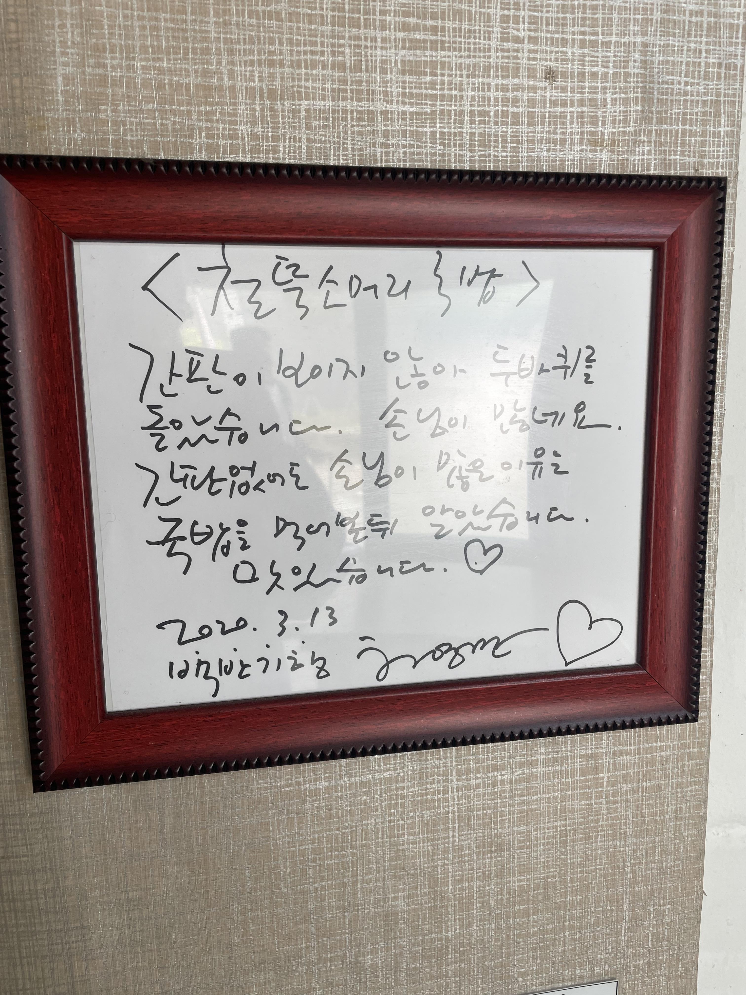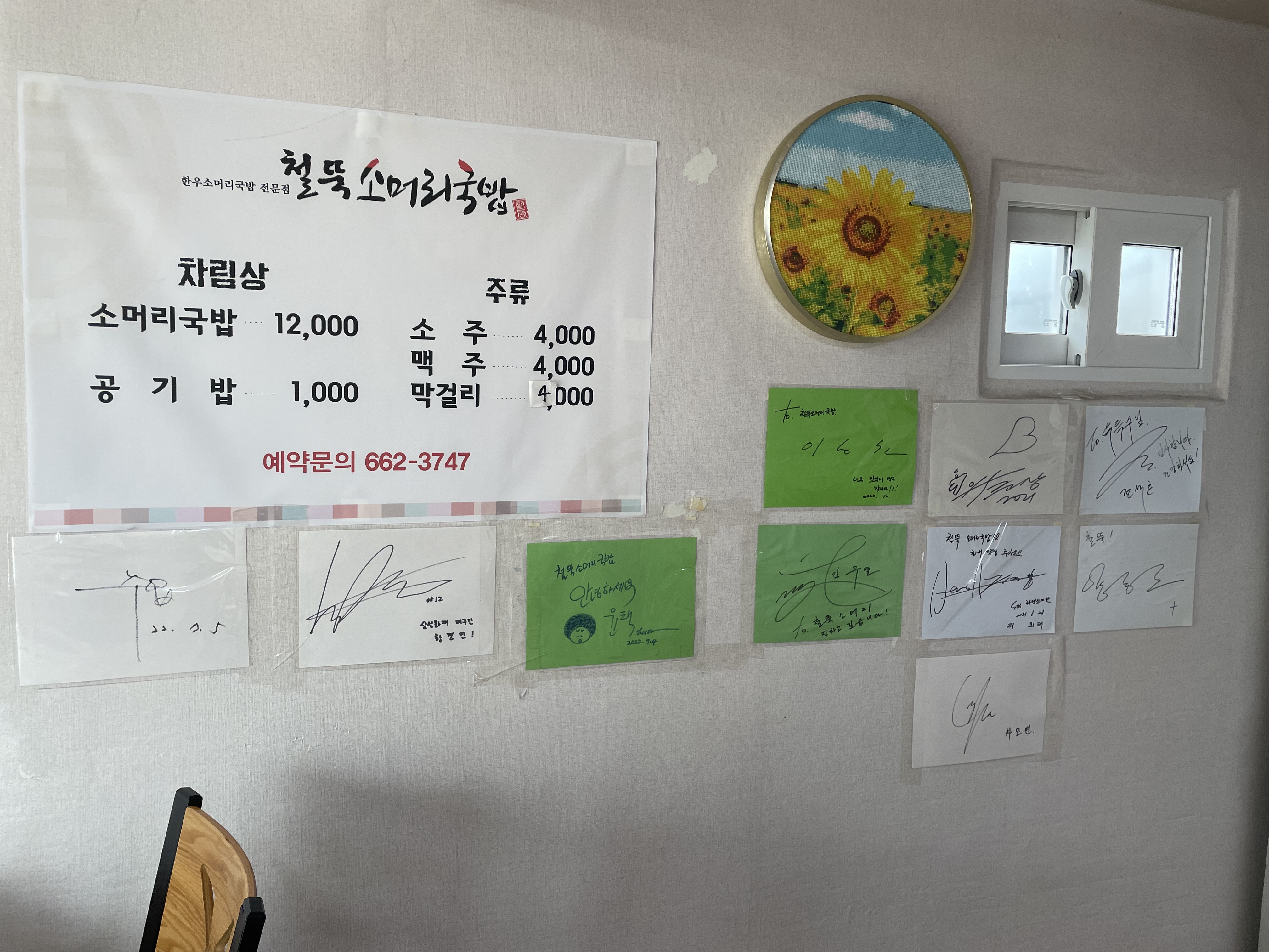 메뉴는 소머리 국밥 하나다. 가격대가 싼 편은 아니다. 여러 유명인들도 다녀간 흔적이 많았다.