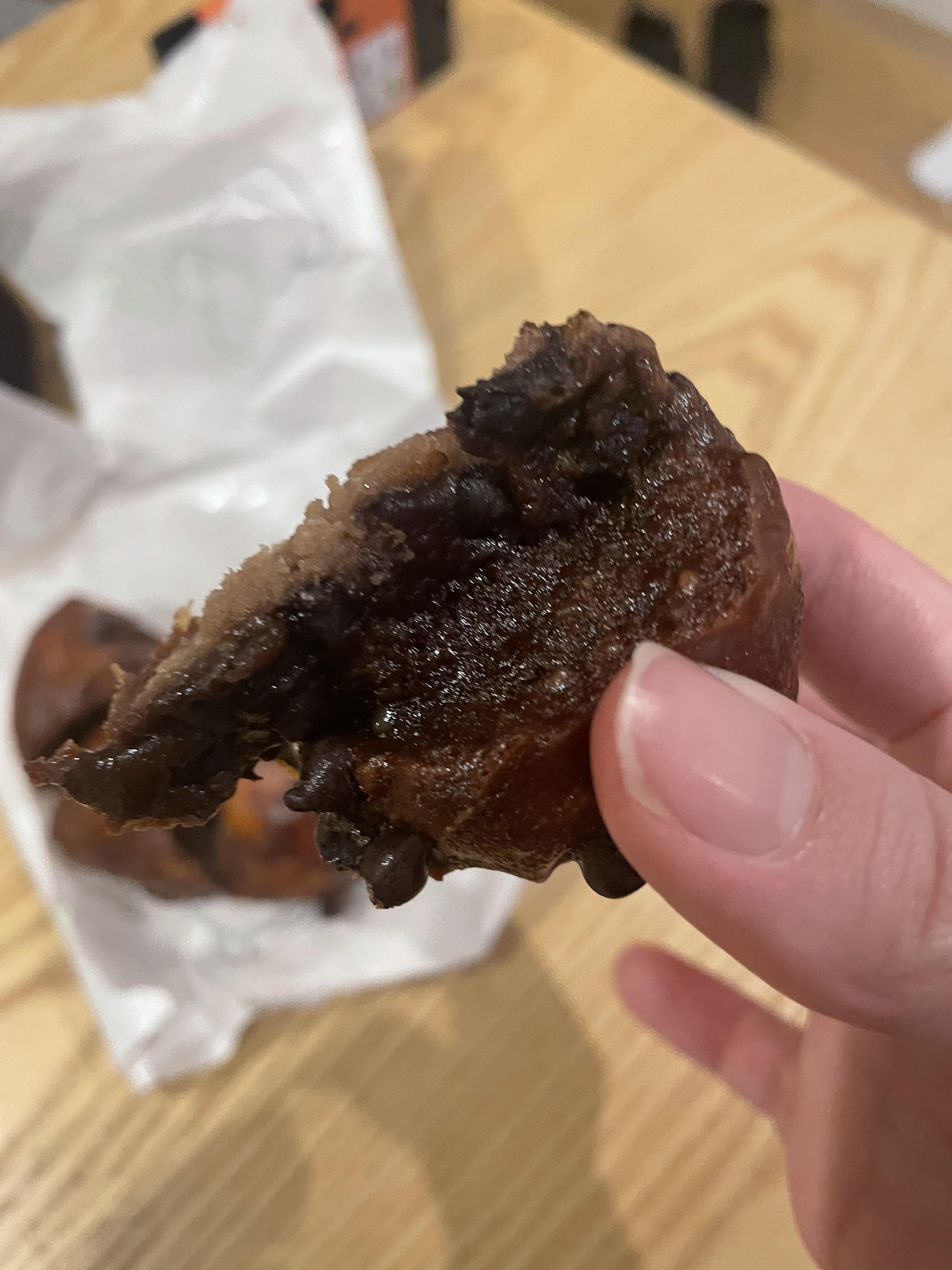 육쪽 초코빵은 살짝 마늘맛도 느껴지면서 진한 초코크림과 초코칩이 들어있다.
