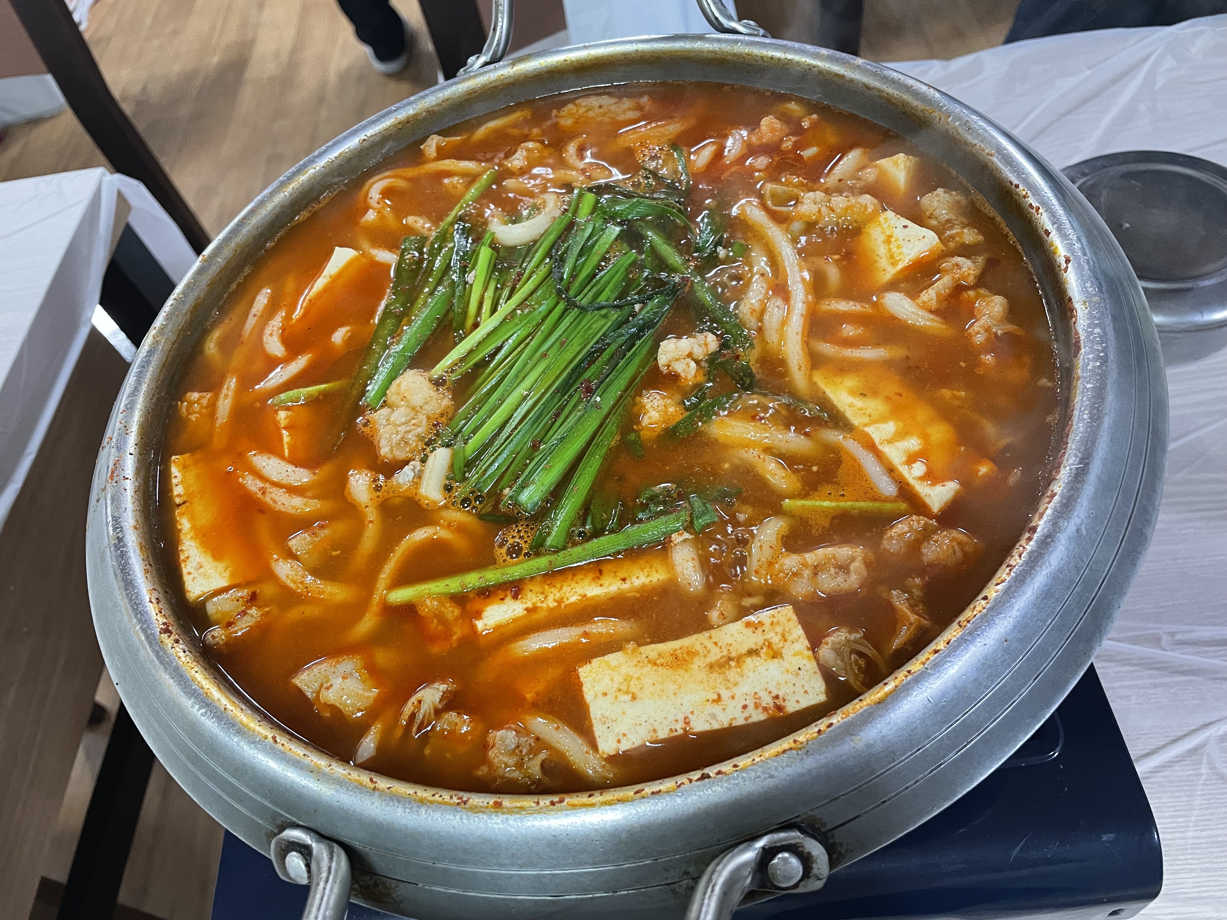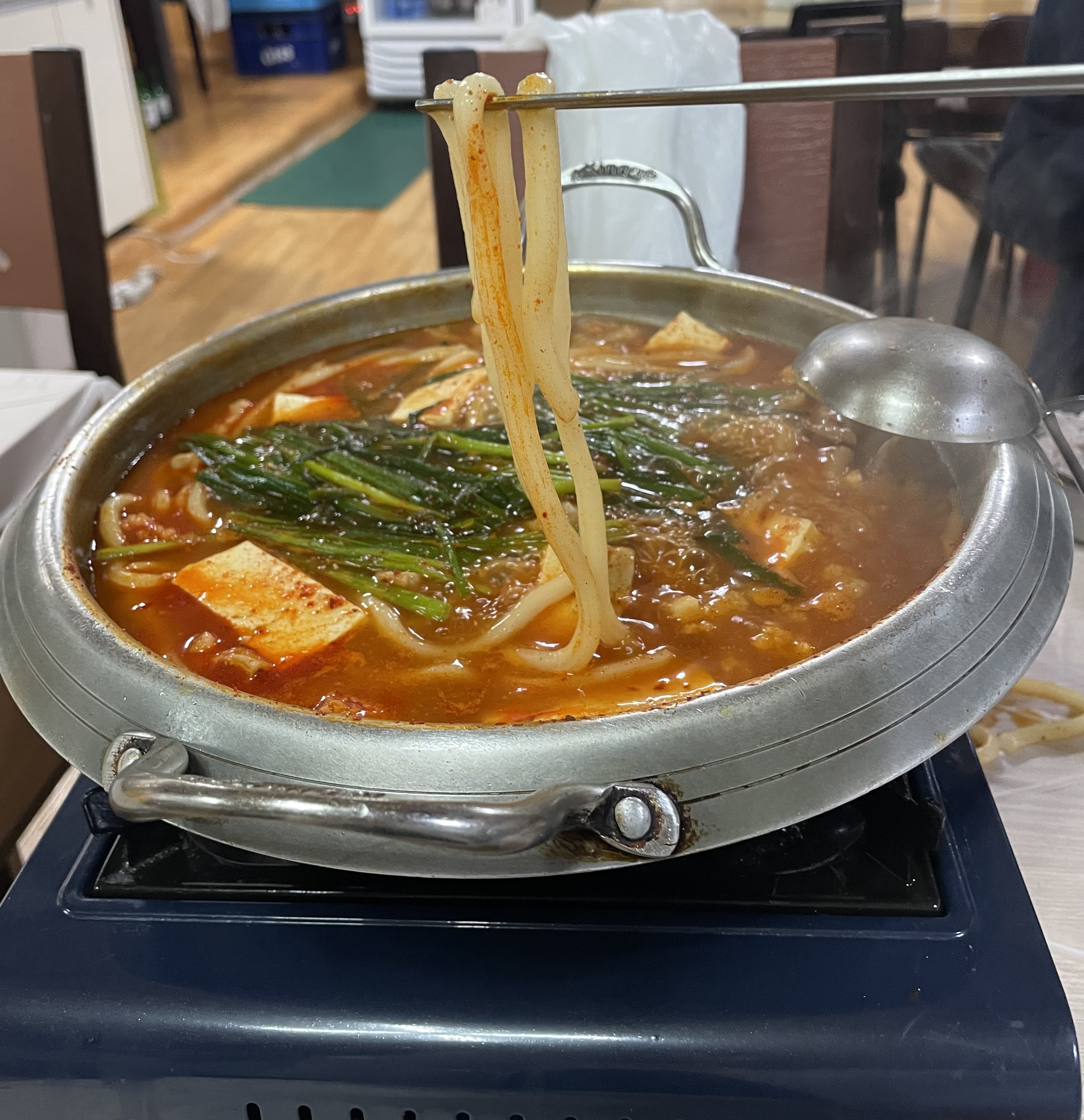 안맵게 해달라고 해도 얼큰하니 맛있었다. 부추와 두부 우동사리도 듬뿍 들어가 있다.