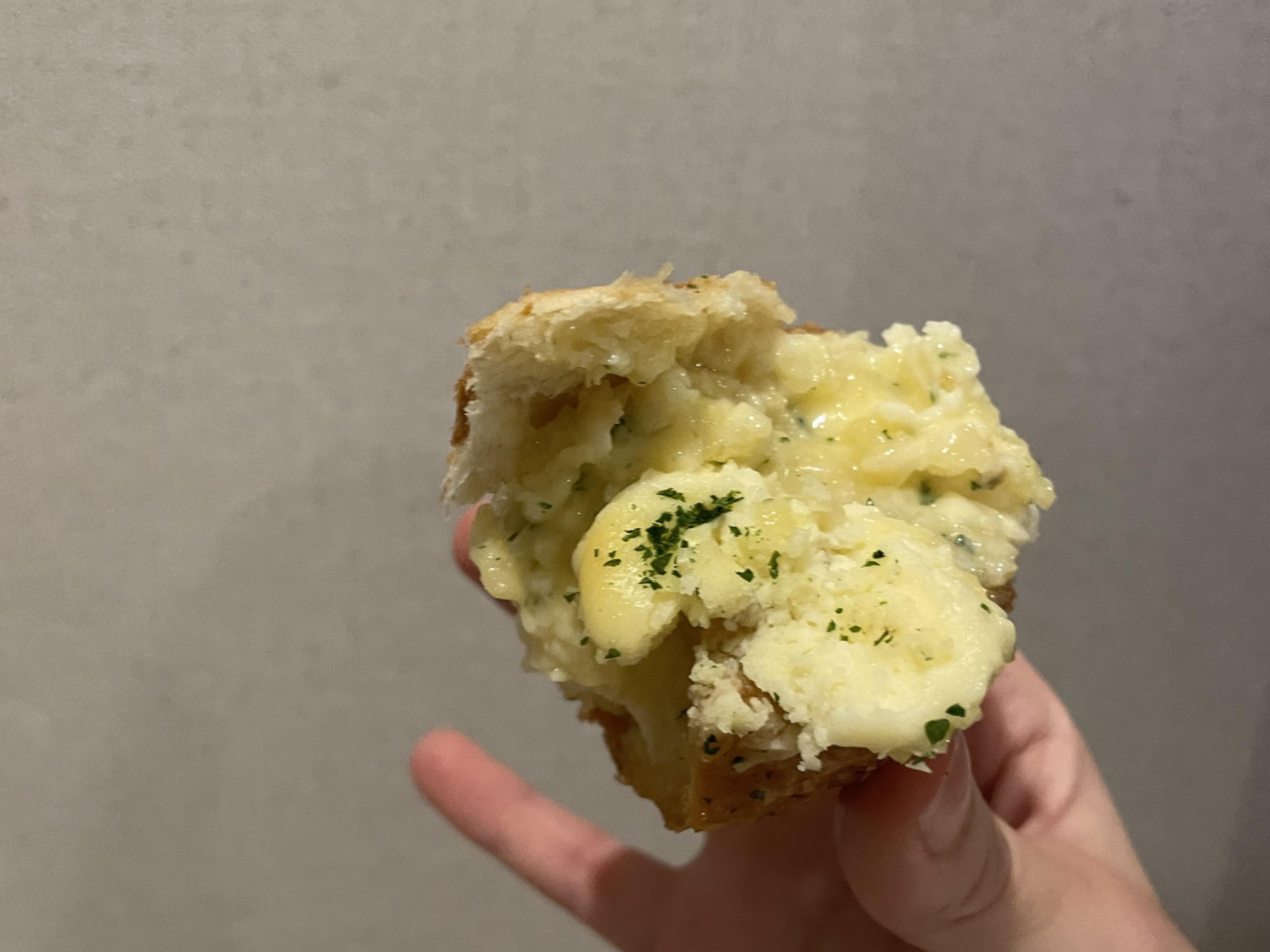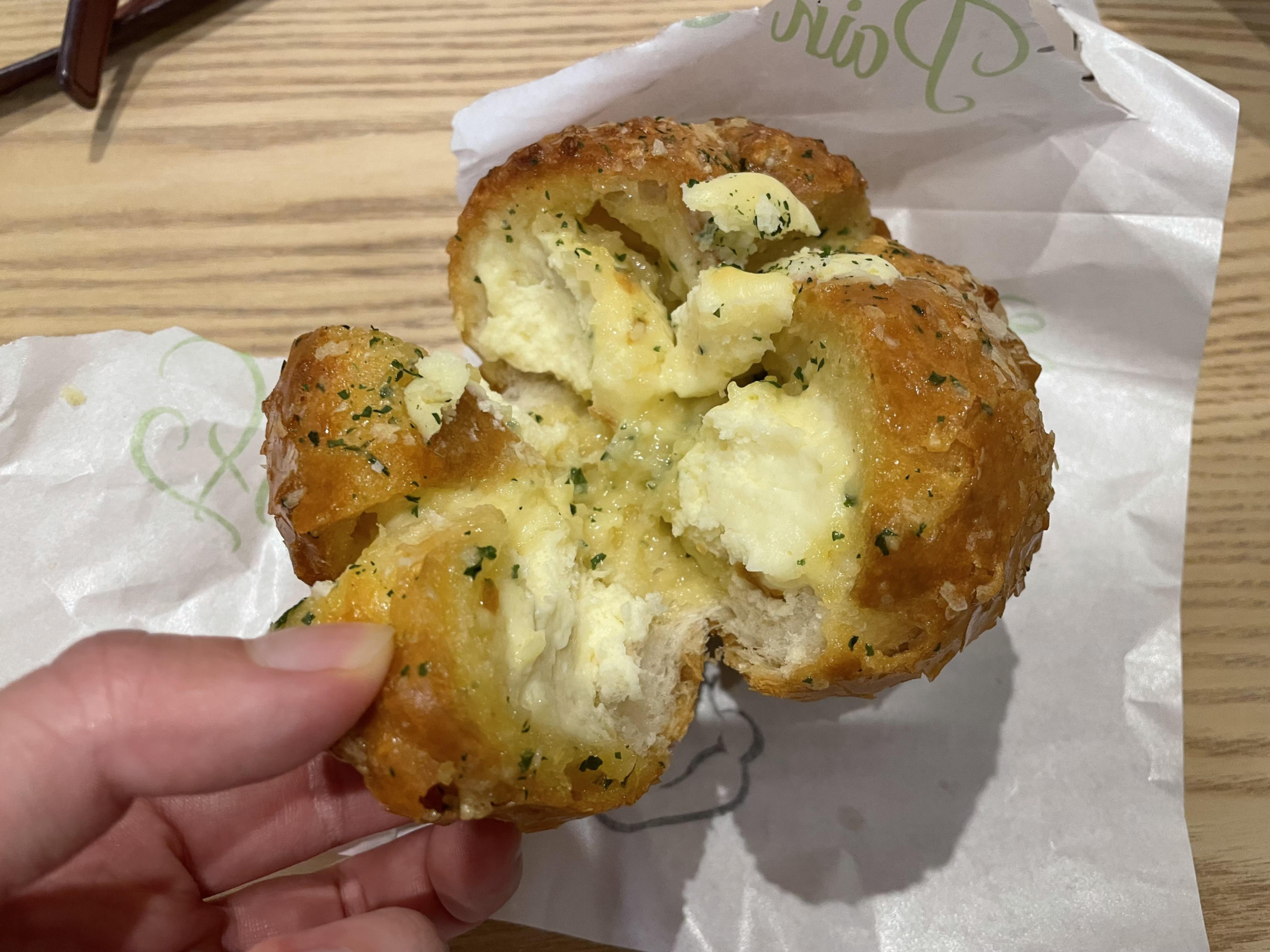 겉은 살짝 바삭한 바게트 식감에 안에 육쪽 마늘빵은 마늘 크림치즈? 가 듬뿍 들어있고,