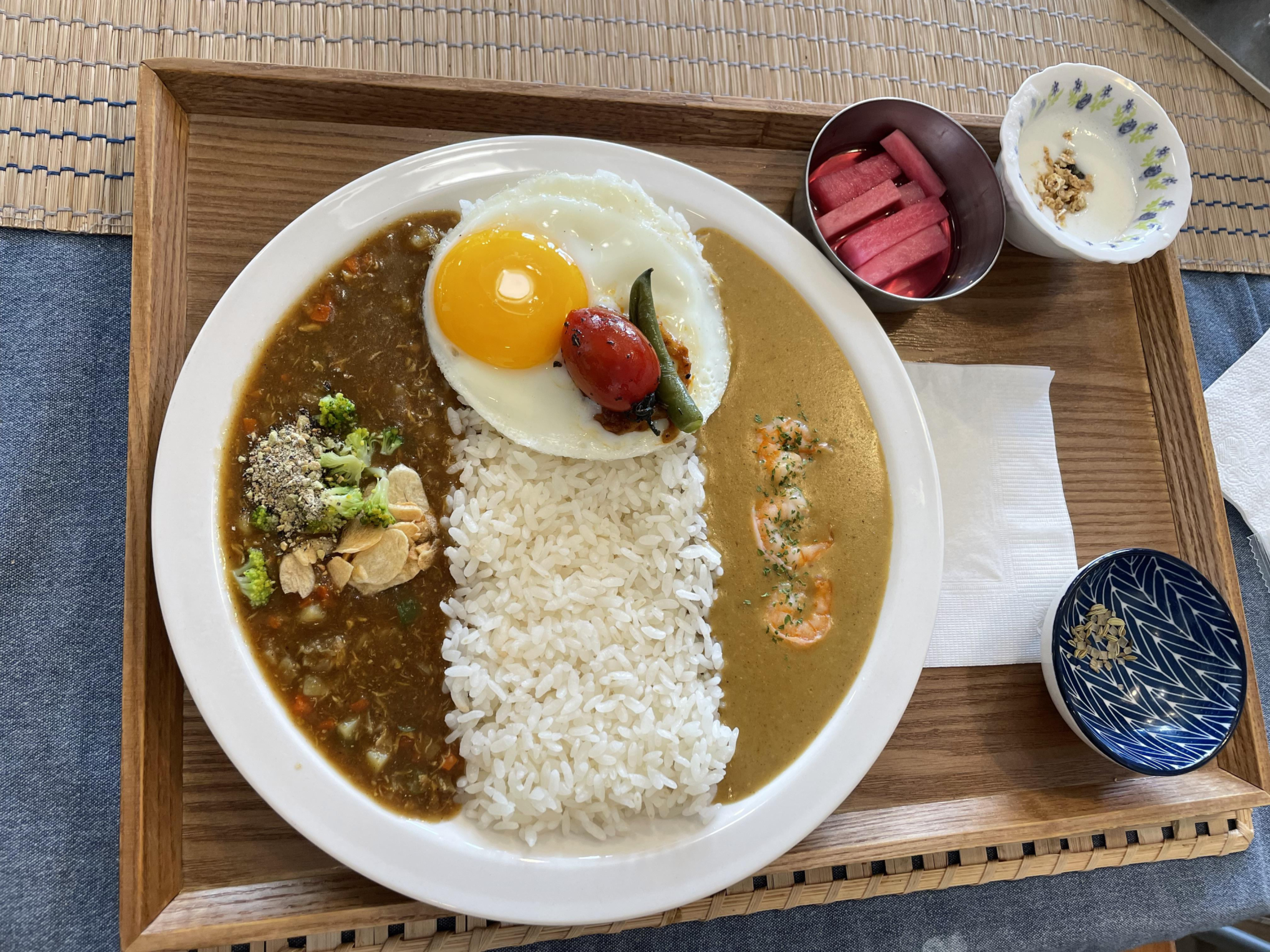우리는 반반 카레로 시켰는다. 음식이 빨리 나오는 편은 아니지만 플레이팅이 너무 정성스럽고 예쁘다.