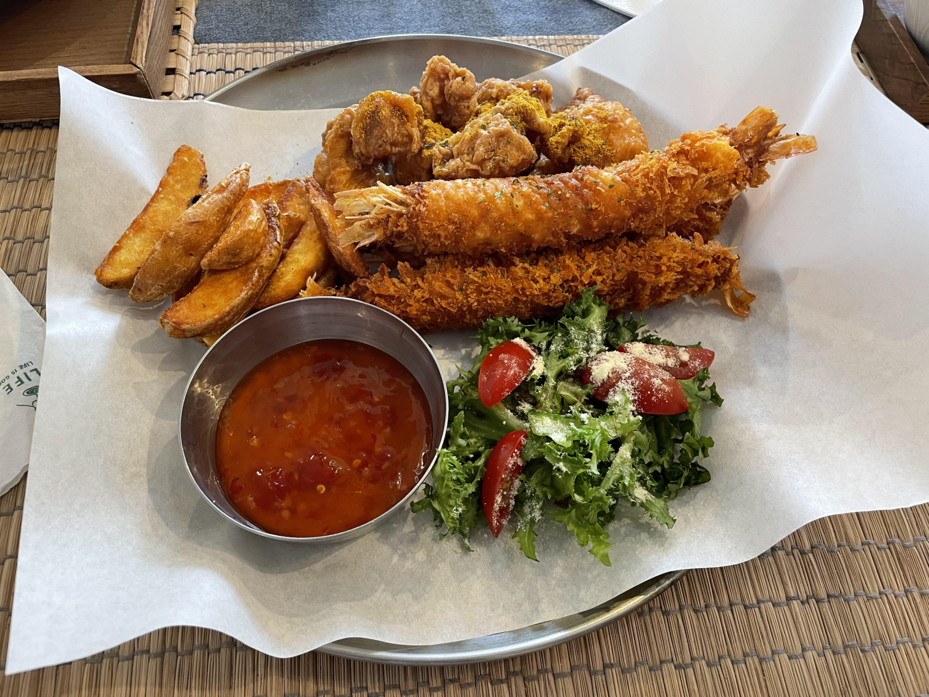 사이드 메뉴로 새우튀김과 치킨가라아게도 시켰다. 따뜻할 때 먹으니까 바삭바삭하고 진짜 맛있었다.