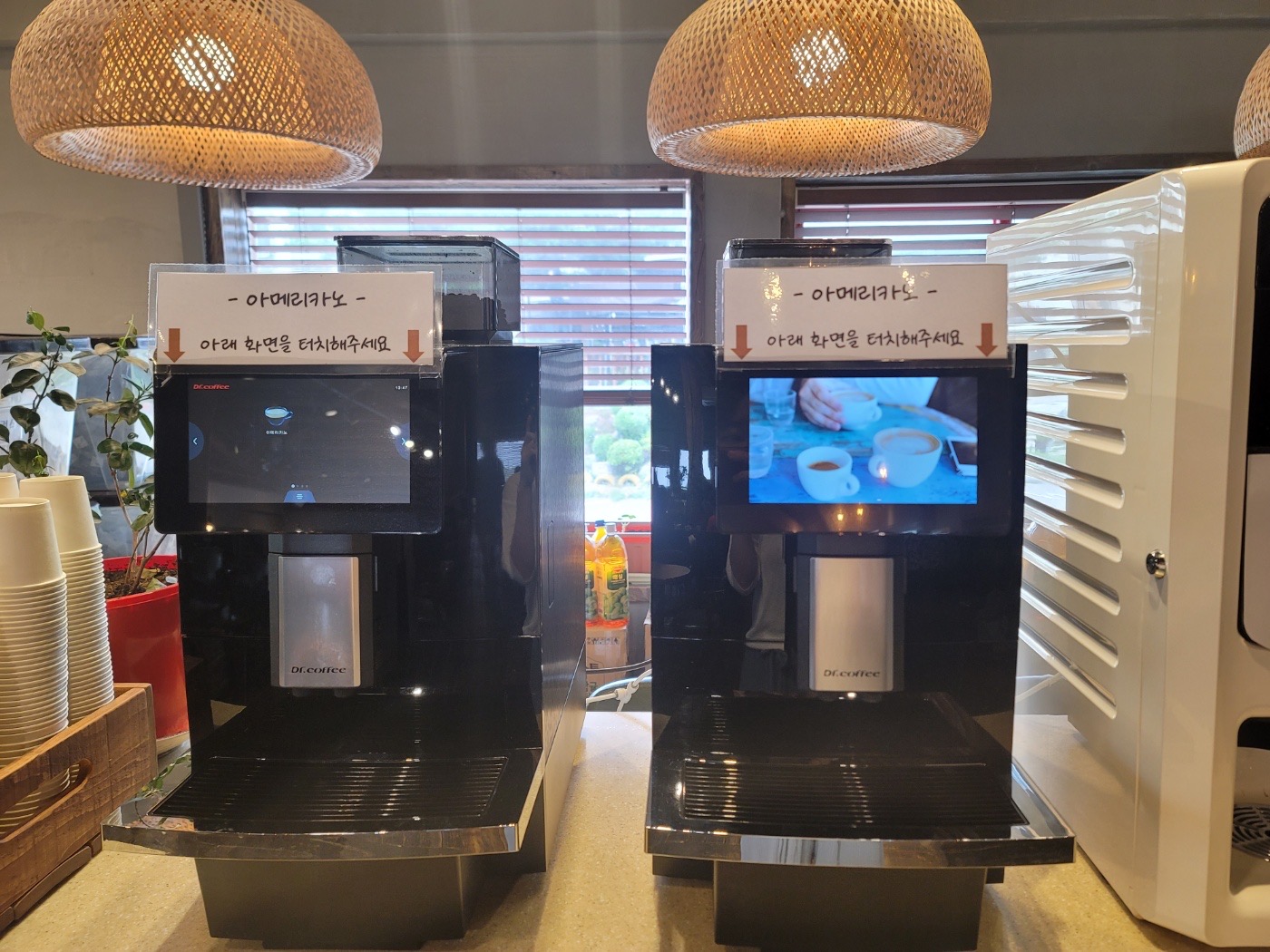 다양한 티벡들과 감귤, 매실 주스 그리고 커피 자판기가 있다. 한식집에서 외식한 후에는 믹스커피랑 매실차가 국룰이다...!