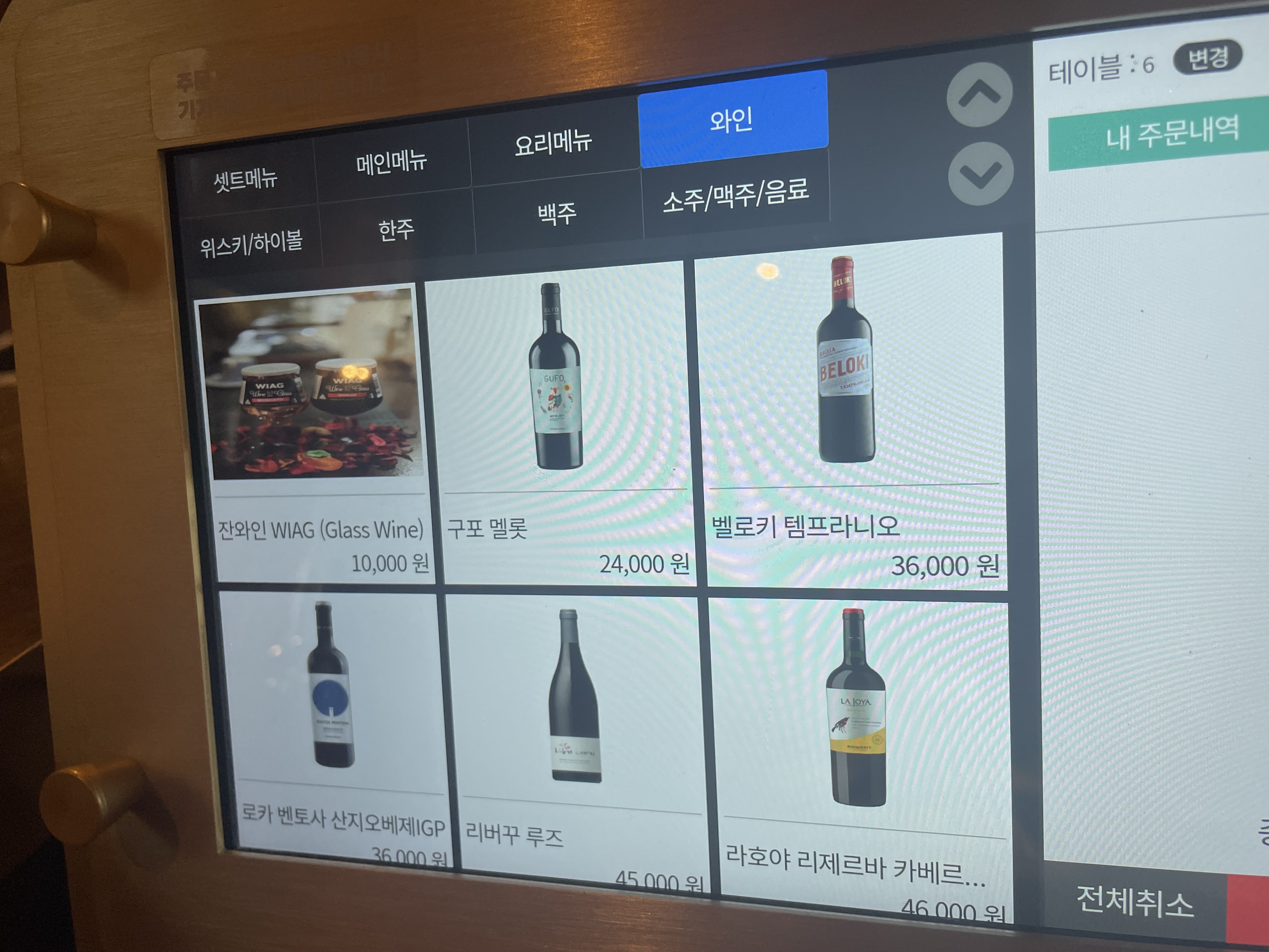 테이블마다 미니 키오스크도 있어서 메뉴 주문도 손쉽게 가능하다.