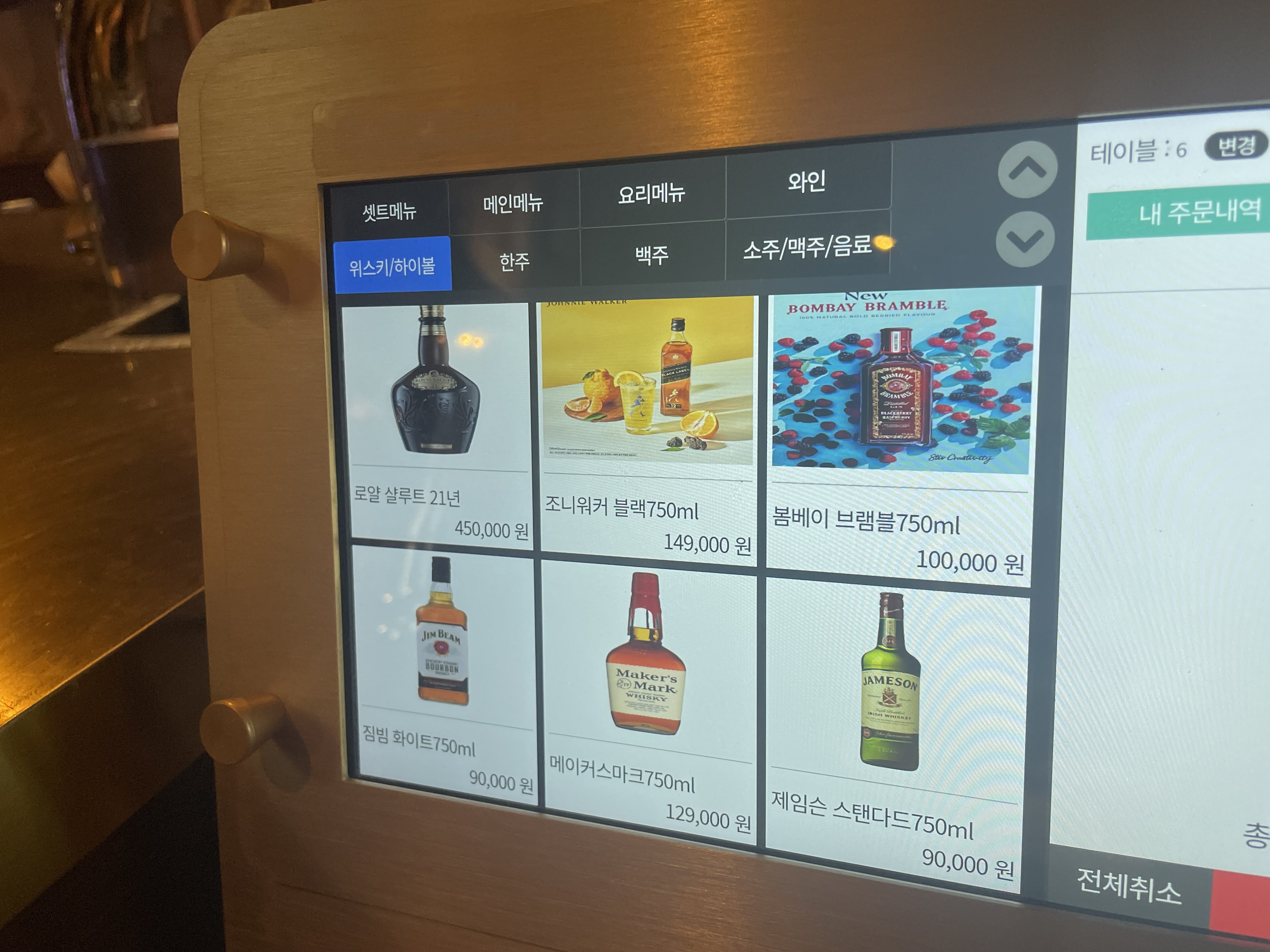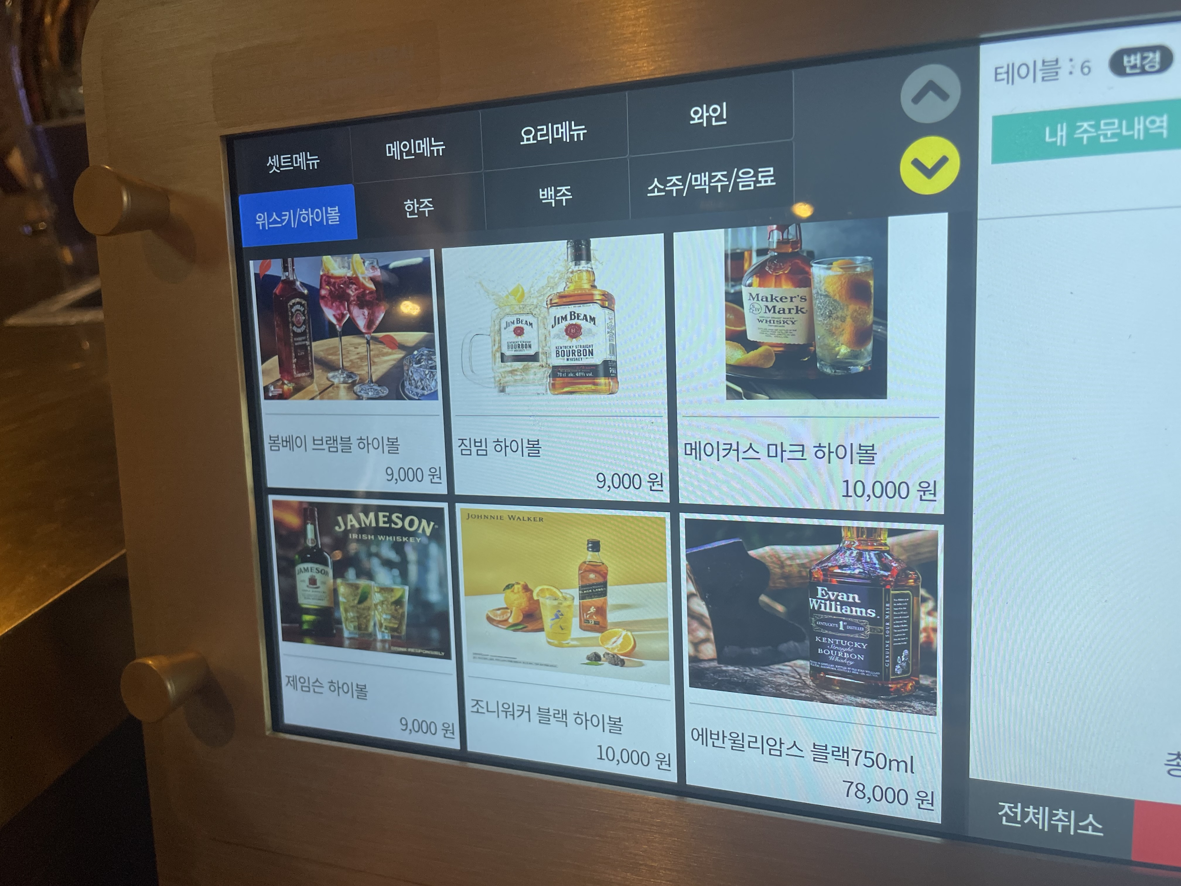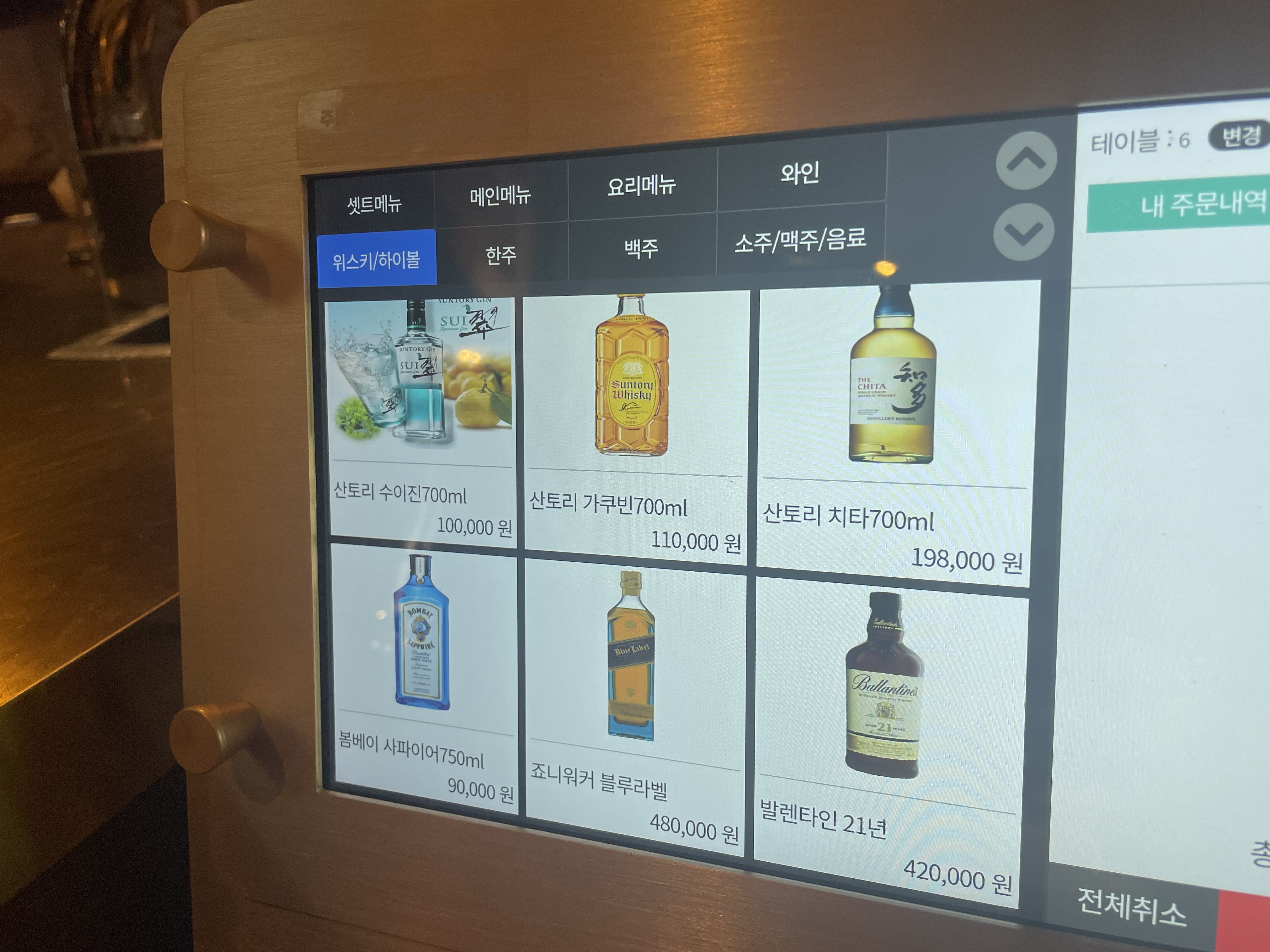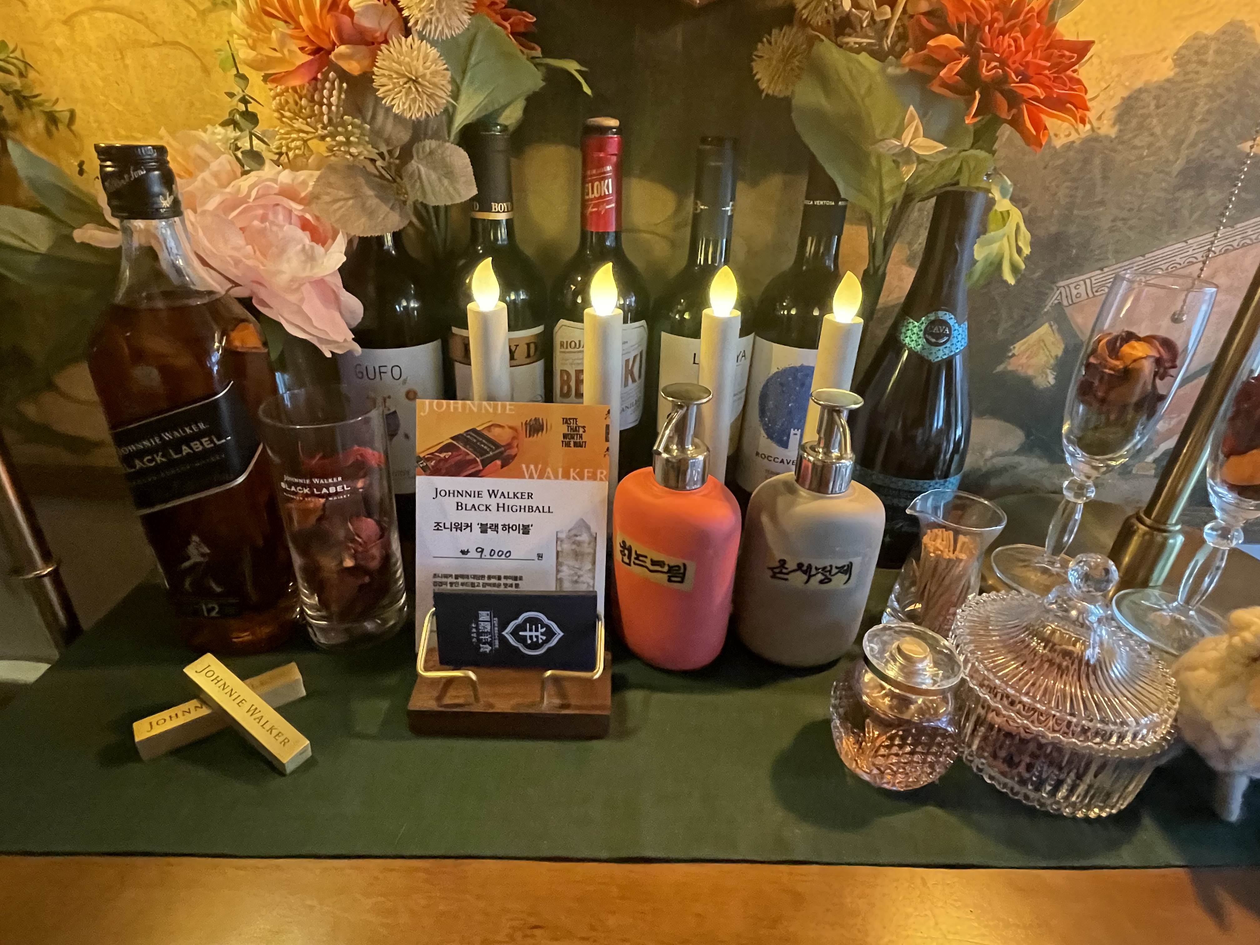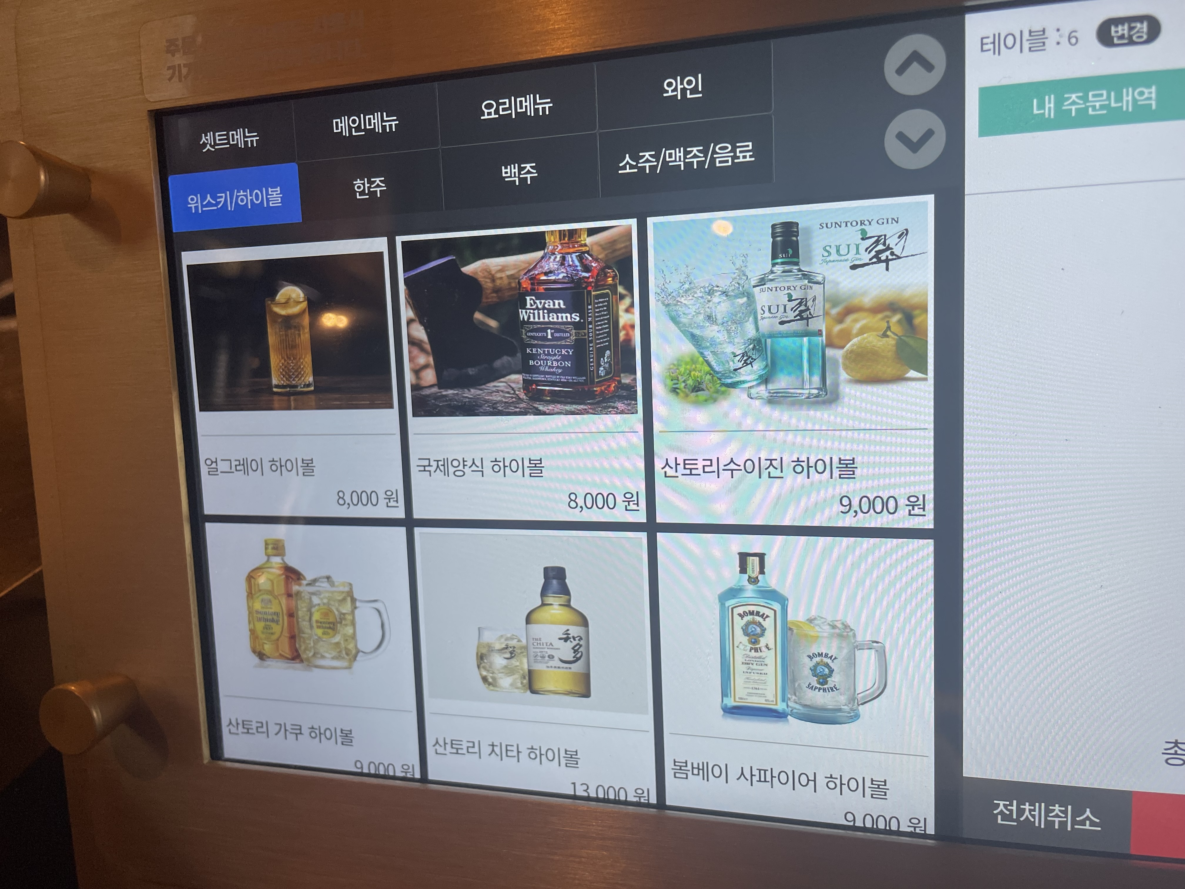하이볼, 위스키, 와인, 백주, 한주, 소주에 맥주까지 주류가 엄청 다양하다.