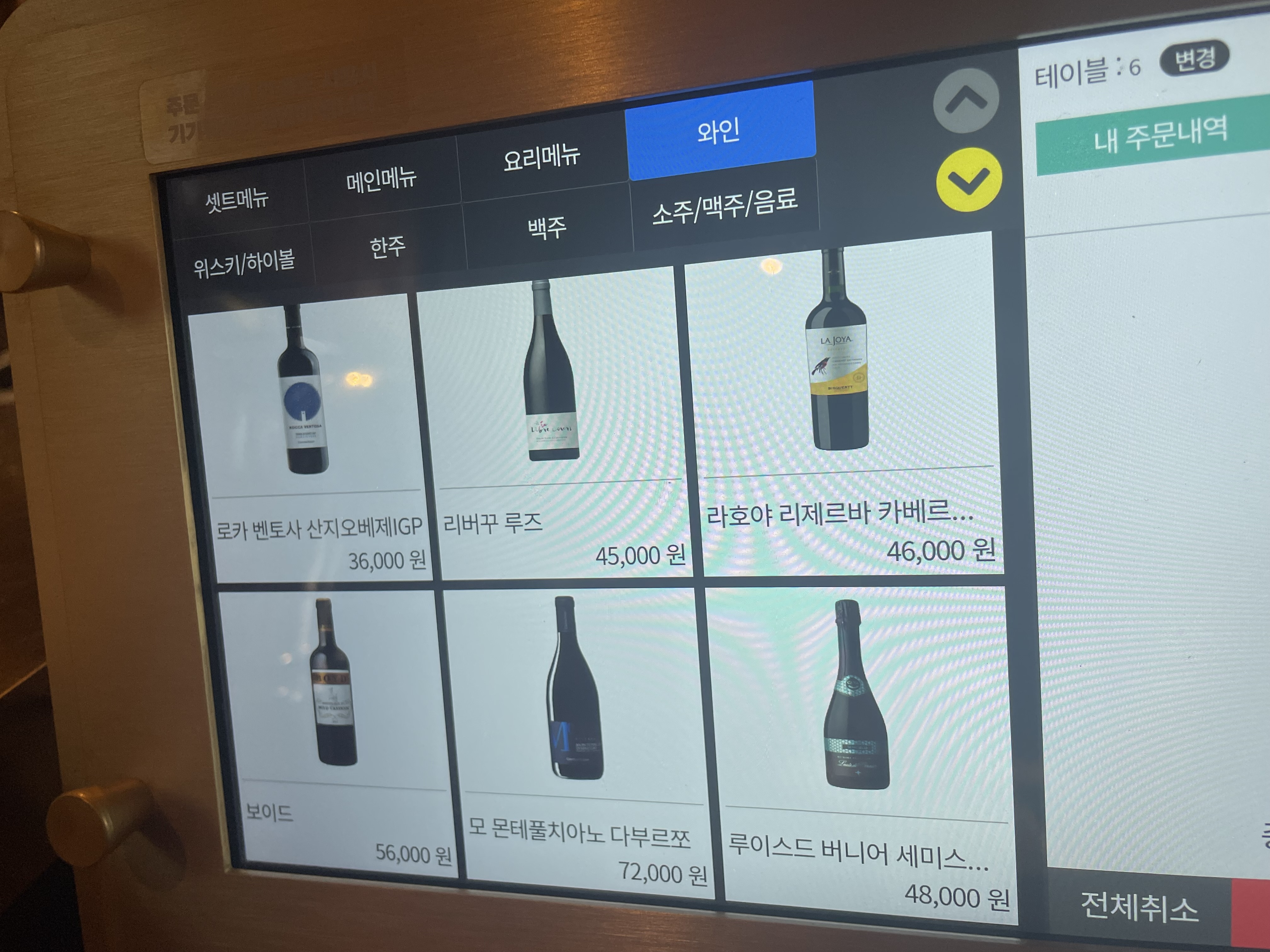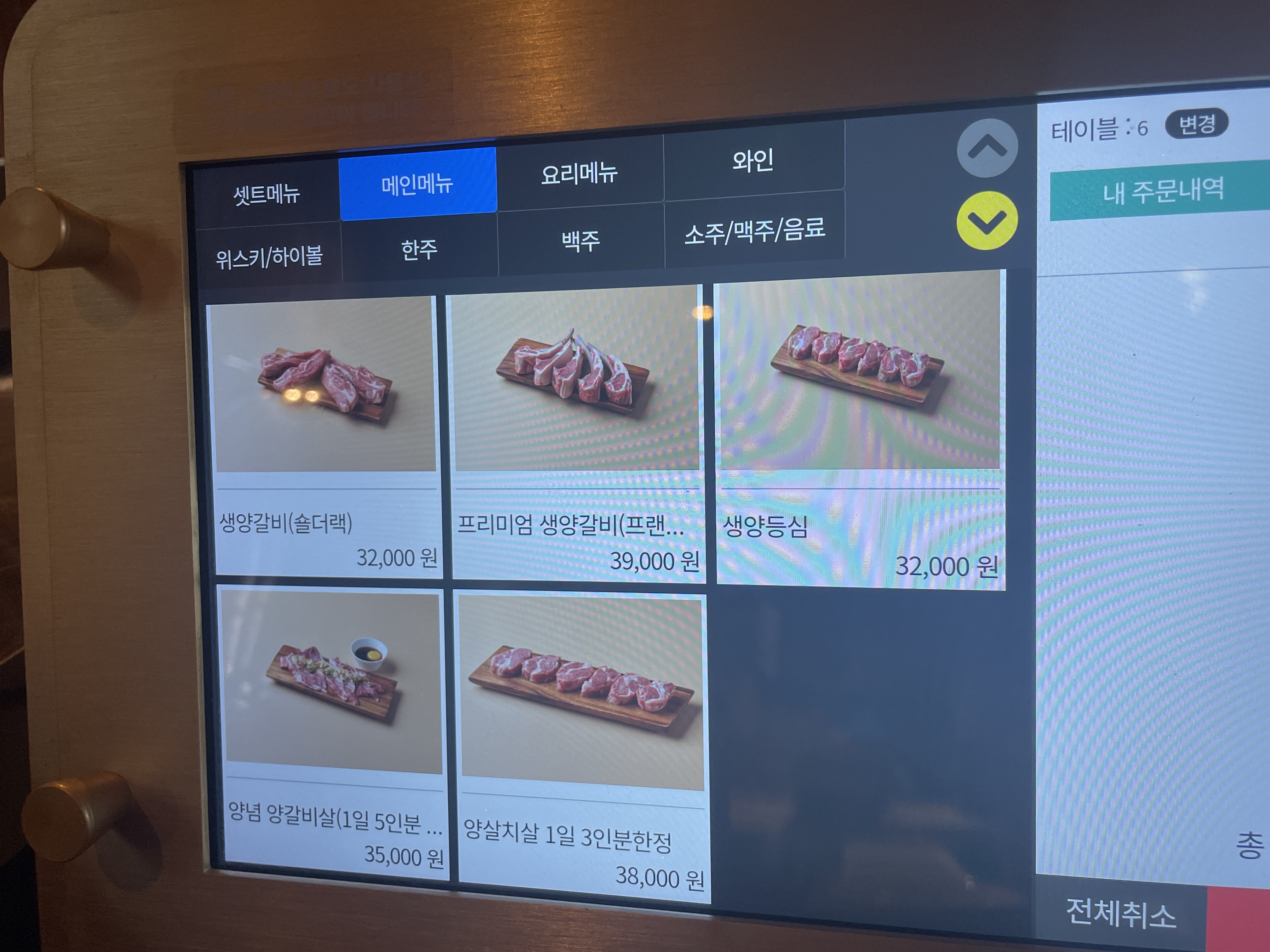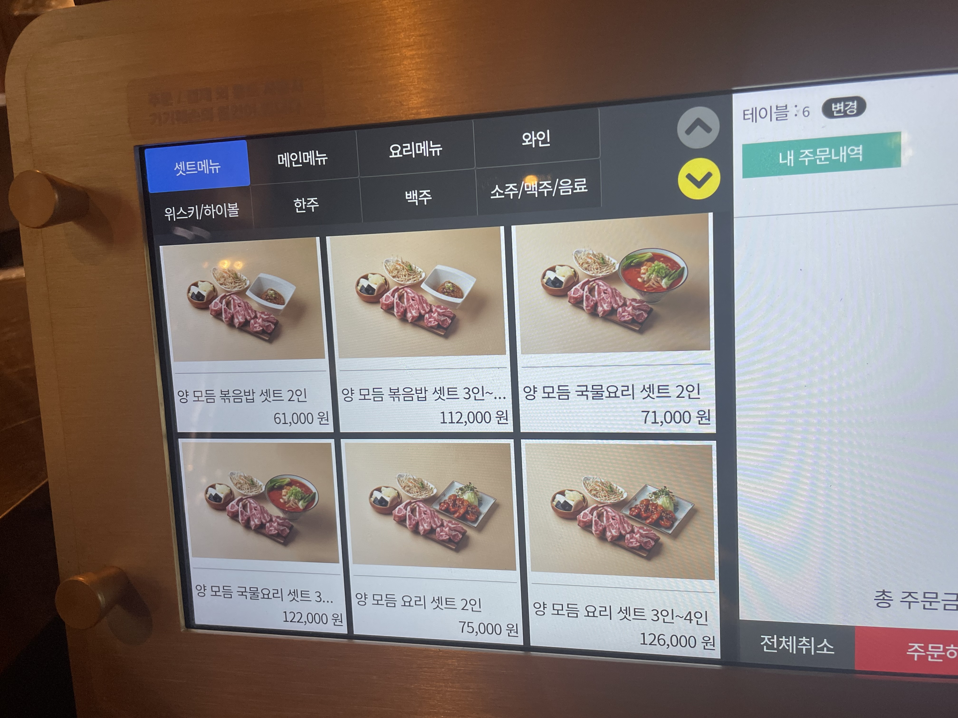 테이블마다 미니 키오스크도 있어서 메뉴 주문도 손쉽게 가능하다.
