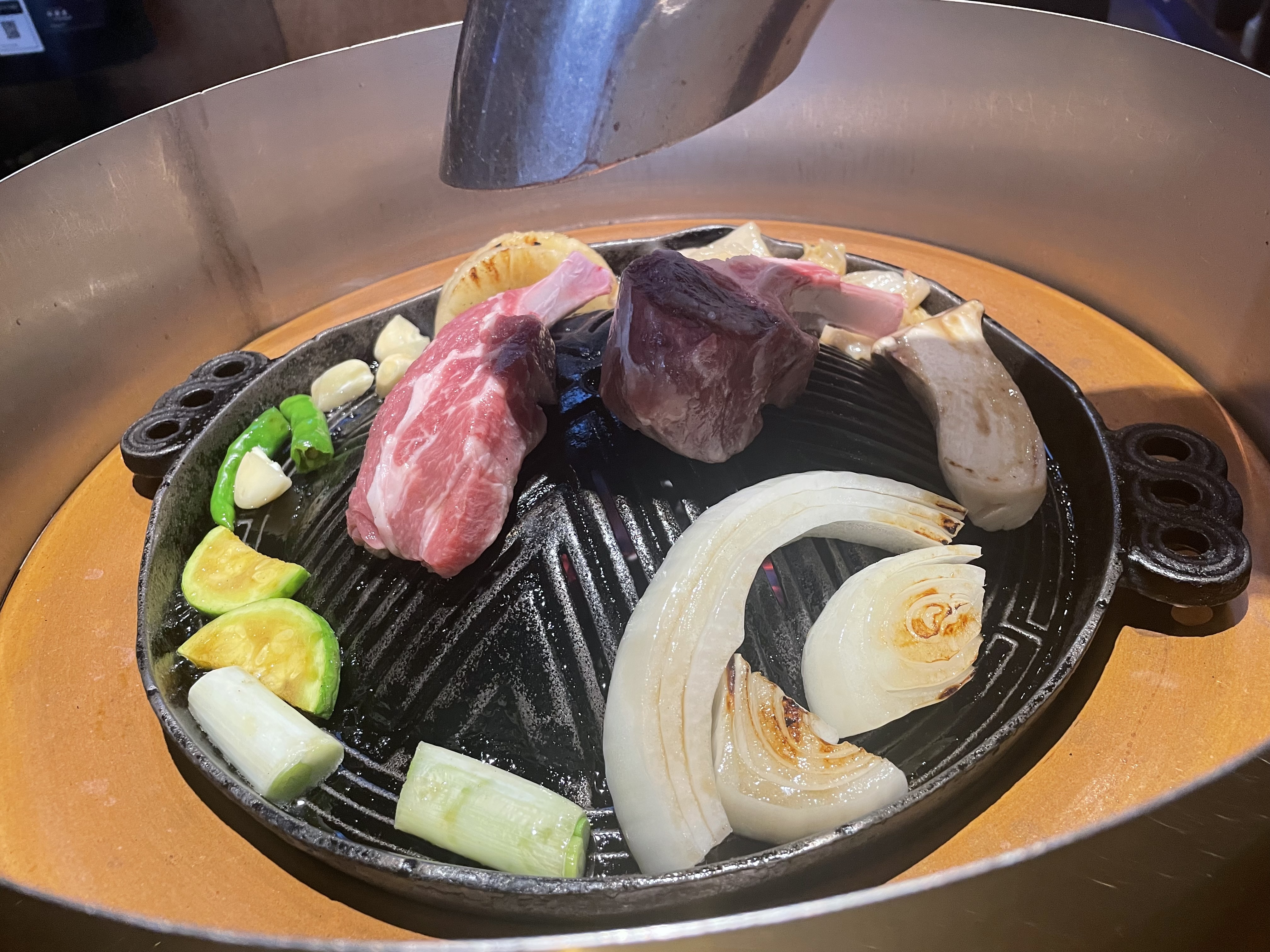 양고기와 함께 중식요리를 사이드로 같이 즐길 수 있는 구성이다.