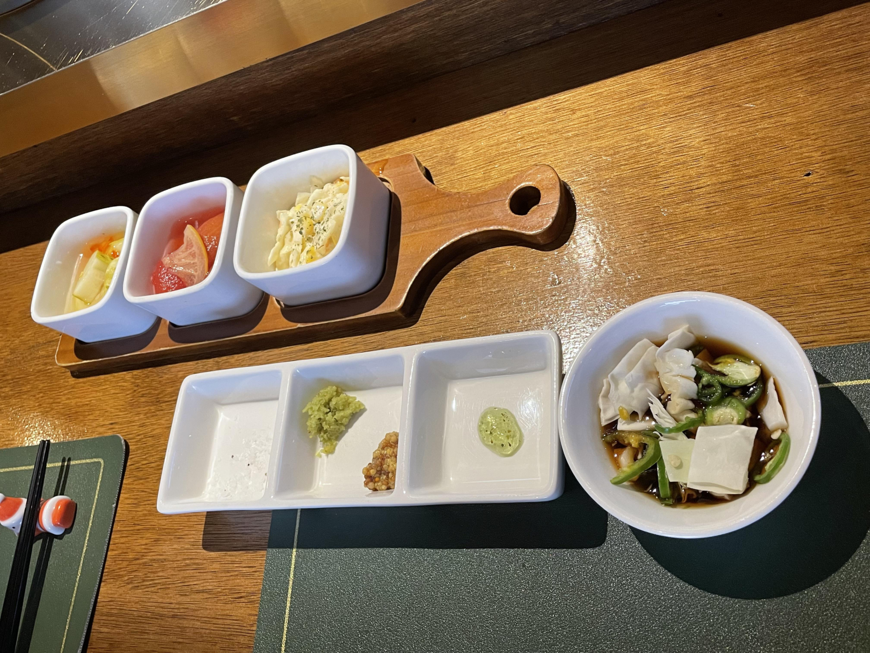 반찬으로는 콘 샐러드, 자몽? 같은 무언가 절임, 피클이 나왔다.