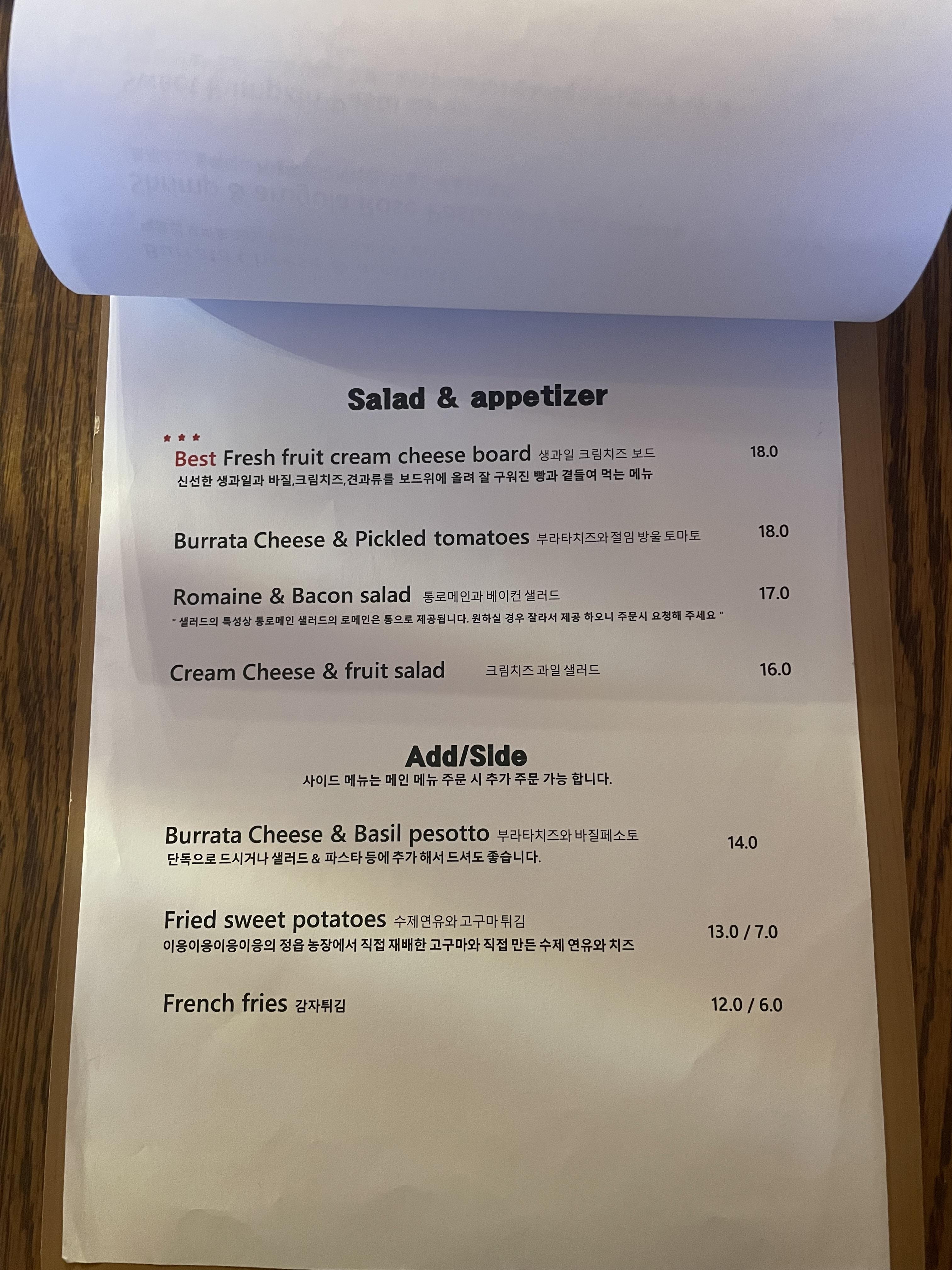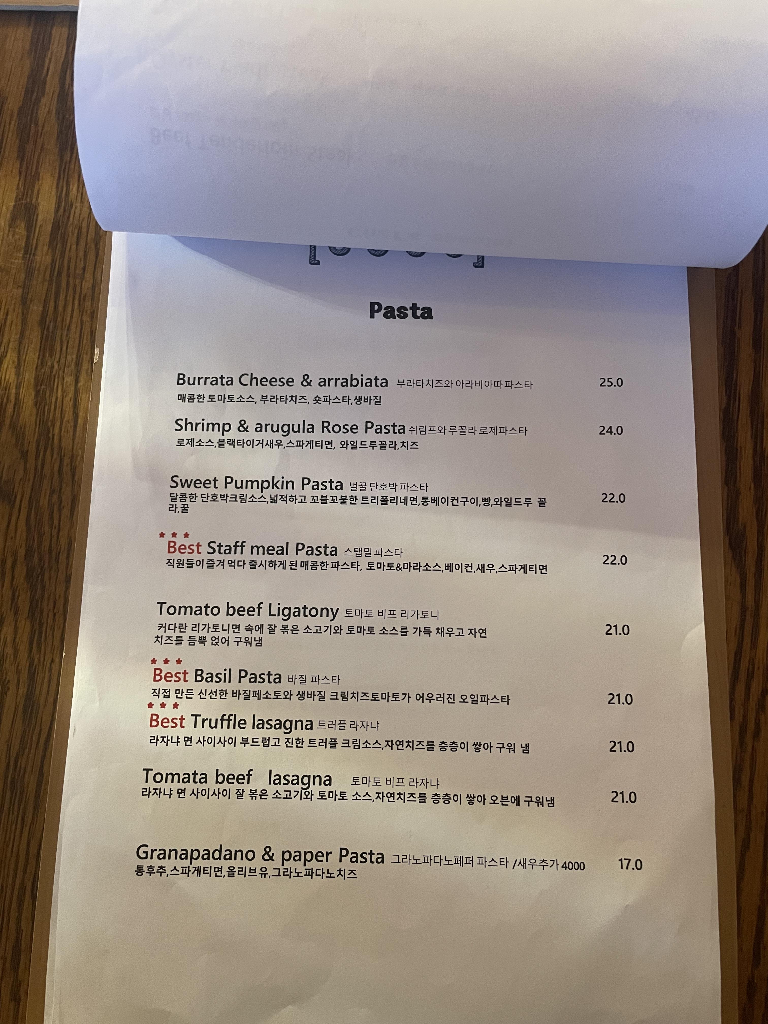 리가토니와 라자냐 2종이 주문이 안된다고 하셔서, 나머지 메뉴 중 베스트 메뉴로 두 가지 주문했다.