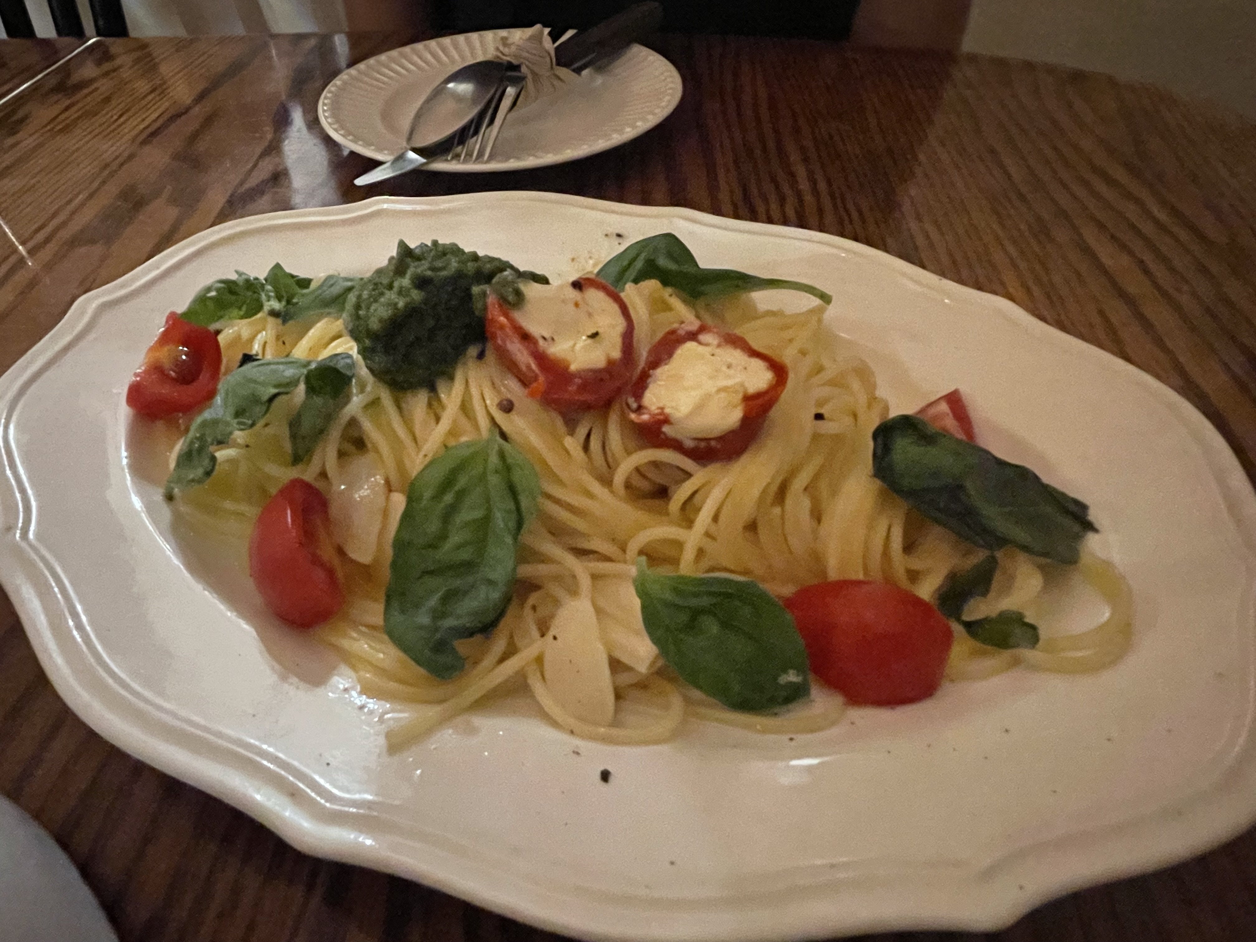 바질파스타도 담백하고 맛있었다. 저 맨 위에 올려진 토마토에 크림치즈 넣은 게 정말 맛있었는데..!!! 한알 밖에 없어서 아쉬웠다.