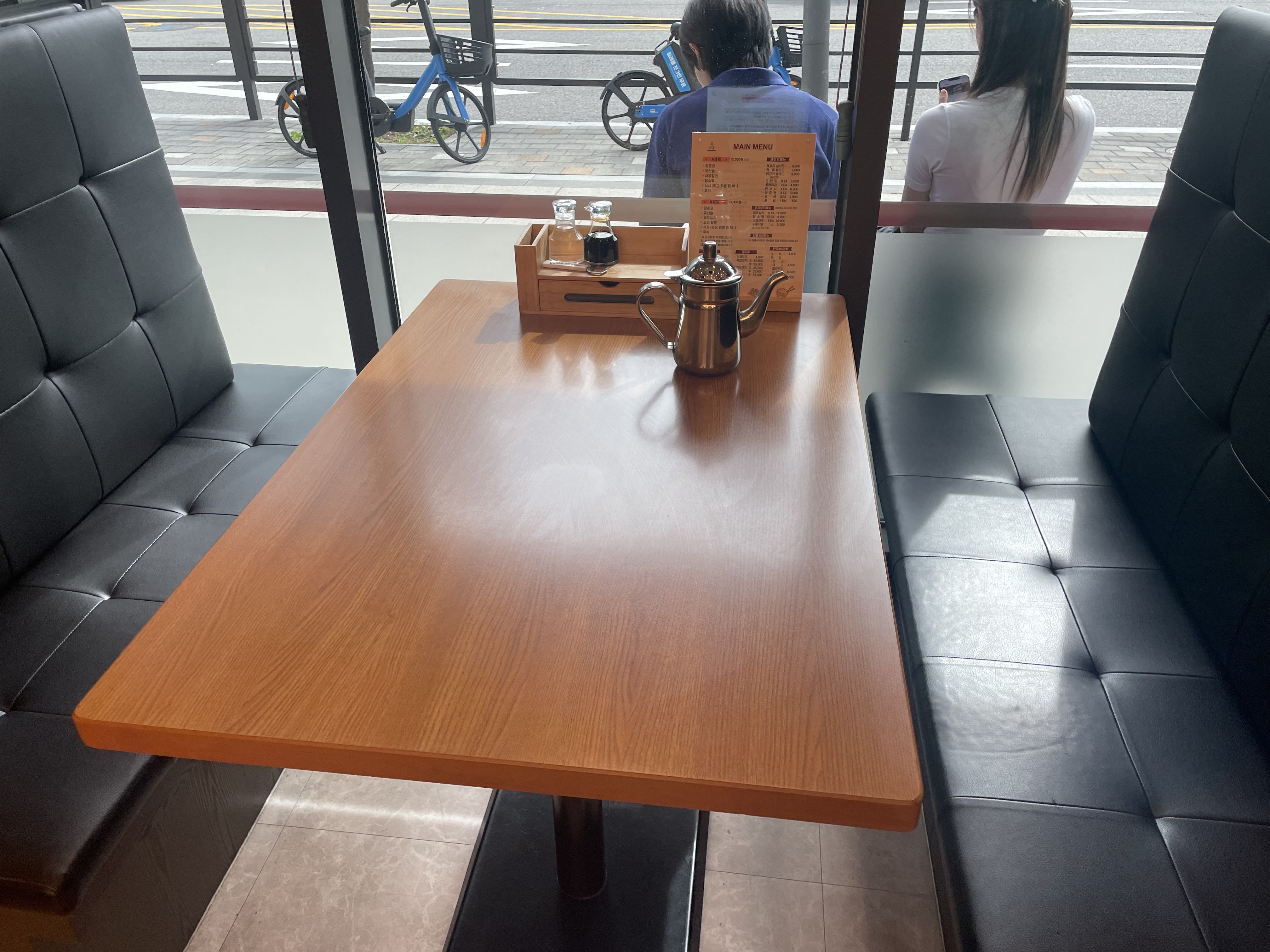 (창가 자리를 안내해 주셨는데 햇빛이 너무 뜨거웠다. 먼지 날릴까 봐 블라인드 못 내려서 좀 더웠다.)