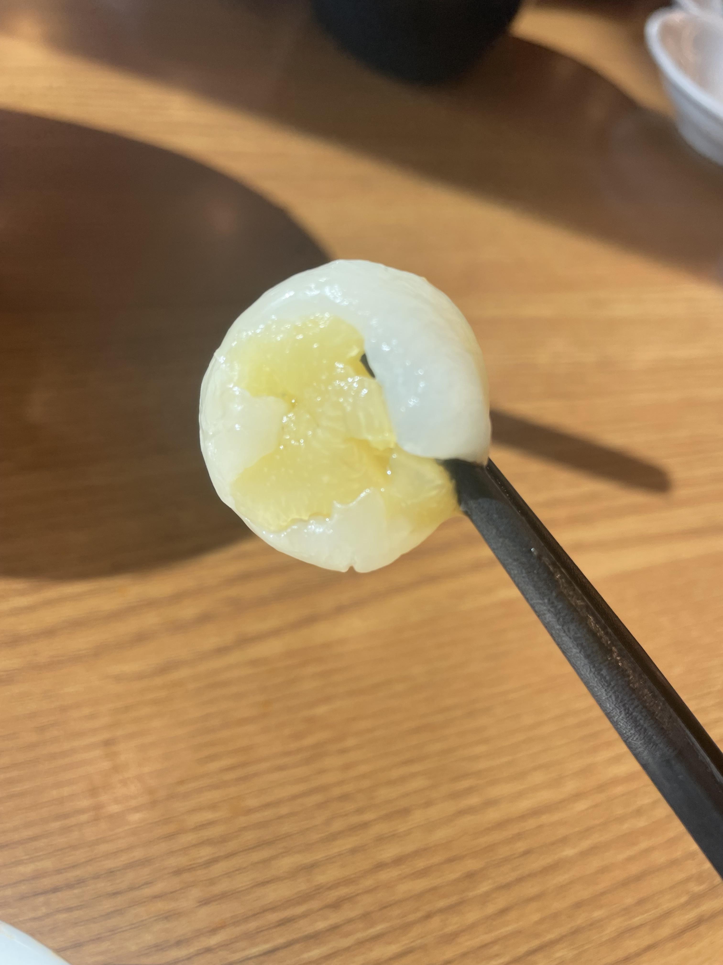 후식으로 나온 파인애플 끼운 리치 먹으며 마무리! 걱정과 다르게 배부르고 만족스러웠던 한 끼 식사였다.