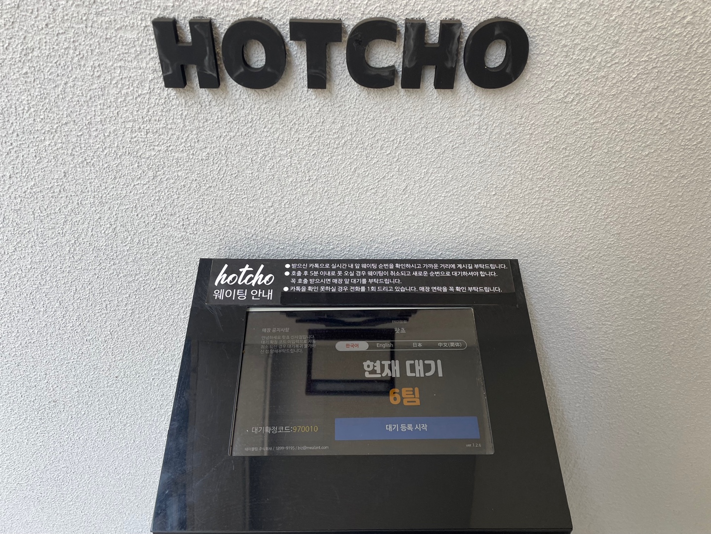 11시쯤 어플로 확인했을 때는 대기가 1팀이어서 앱으로 웨이팅을 걸 수가 없었다. 대기가 2팀 이상 있을 때부터 어플로 걸 수 있었다.
