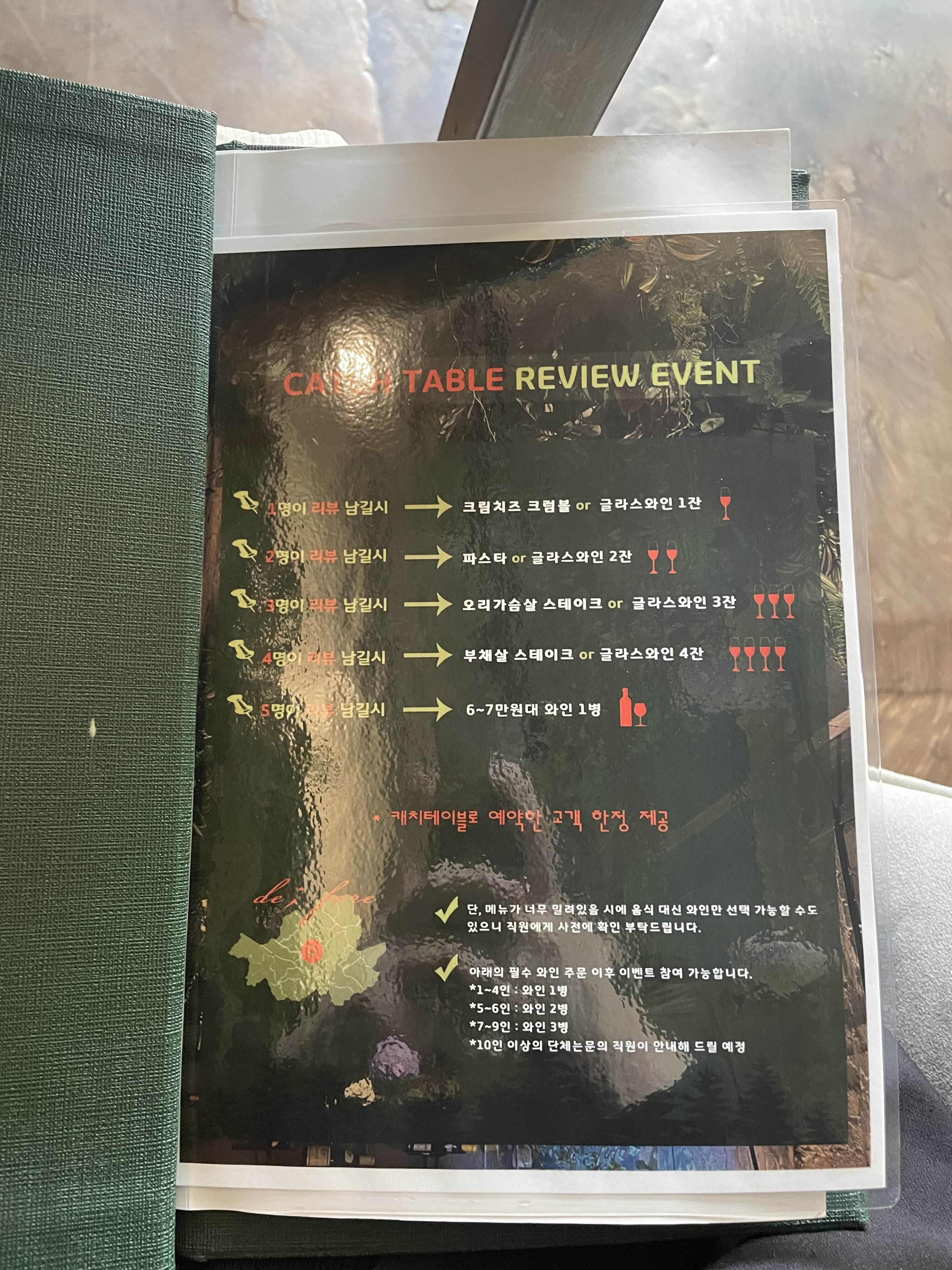 테이블 당 와인을 필수로 주문해야 하는 곳인데, 와인을 못 드시는 분들을 위한 논알코올 와인과 샴페인도 있다고 한다. (무려 100가지 종류의 와인이 있는 곳이다!)